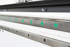 齒條導軌 Y軸使用進口大品牌35mm傳動導軌,2模研磨級C6精度進口斜齒條,壽命與質量得到國際認可。 |